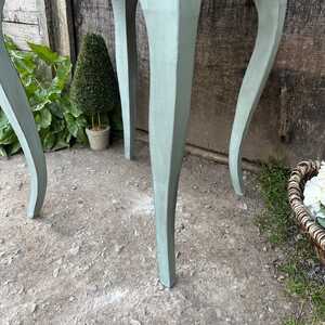 With its lovely duck egg blue colour and typical French Brocante shape, this bedside table will add lots of charm and character to your home. It stands proud on elegant cabriole legs and has a faux drawer on which we have added a decorative vintage drop handle.