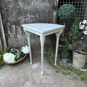 Pretty Little Grey Hand Painted Vintage Corner Table With Marble Effect Painted Top