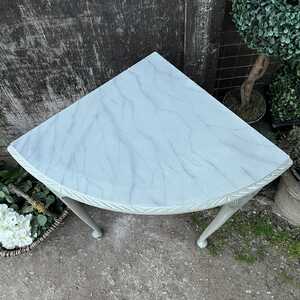 Vintage Grey Hand Painted Country Chic Style Corner Table With Marble Effect Top