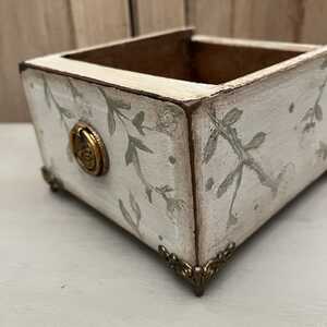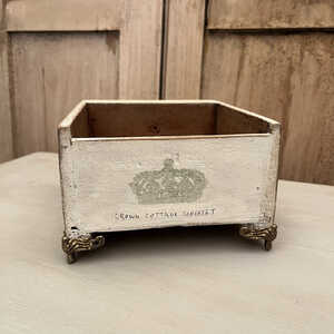 Absolutely adorable White Hand Painted Little Wooden Vintage Flower Motif Storage Box on Feet