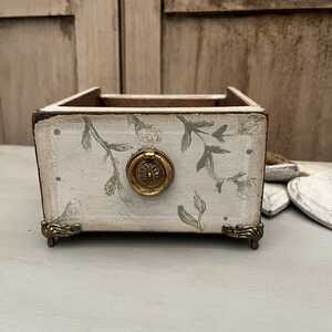 White Hand Painted Little Wooden Vintage Trinket Storage Box Ornate feet & Handle