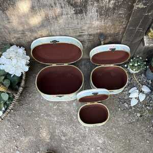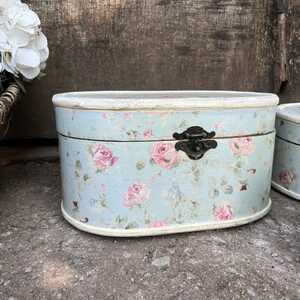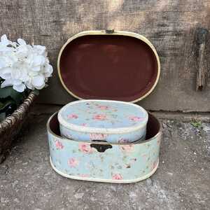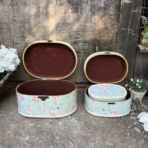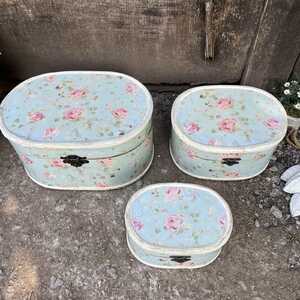 Adorable Pink & Blue Flower Motif three Stackable in one box Romantic Rustic Cottage Country Oval Storage Boxes