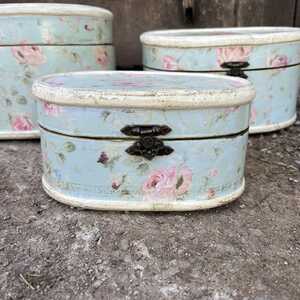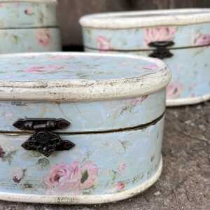 These gorgeous boxes will add that charming Rustic Vintage Cottage style to your home. They are so sweet. Use them on their own or stack them up in the larger box. Always handy to take out to use when you need them.
