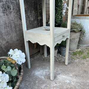With its sleek "less is more" shape combined with the romantic, pretty details, this little gem would look lovely in rooms in your home. It has one drawer with an ornate pull handle under the bottom shelf. Use it as a bedside table, a hall table or why not as a basin base in your cloak room etc.