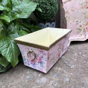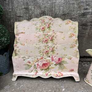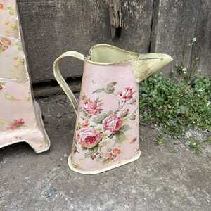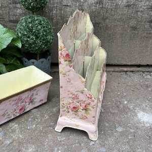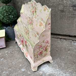 Absolutely adorable pink floral set of metal brocante romantic country style desk letter holder, vase and flower box