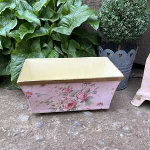 Floral Pink Set of Rustic Cottage Brocante Metal Letter Holder / Flower Box / Vase