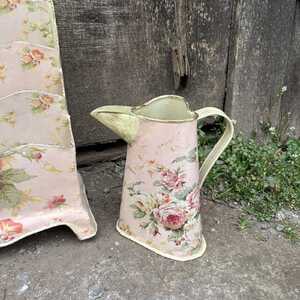 If you love the romantic cottage country style with a touch of French country brocante style, then this set of a desk letter holder, vase/watering can and flower box might be just right for you. It is simply gorgeous with its pink colour combined with pretty flowers and a touch of gold. They are made of metal and are for ornamental use.