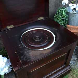 Quirky Antique Edwardian Mahogany Commode With Original Ceramic Pot & Mahogany Lid / Bedside Table / Side Table / Hall Seat¨If you are looking for a bit of quirkiness then this charming commode is perfect. It is perfect as a hall seat, bedside table in your bedroom, side table in your living room. Would be great as a historic item in your Shepard's Hut or Glamping Tent. It would add so much character while it still can be used as a seat.