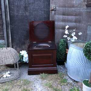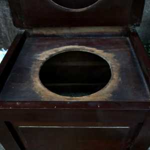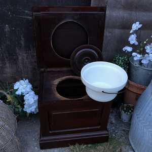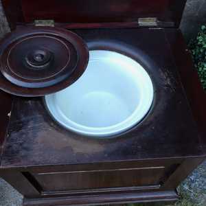 Antique Country Farmhouse Mahogany Commode Seat Bedside Table Ceramic Pot & Lid