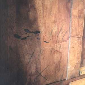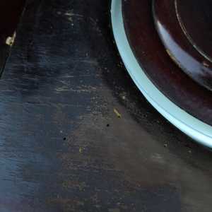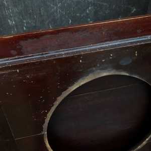 It is in good antique condition. There are marks and dents from its long life - "blemishes" that, in our opinion, only adds to the character and charm of the piece. There is trace of woodworm which has been treated. The holes can be filled in with dark filling paste if you want to disguise it.