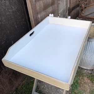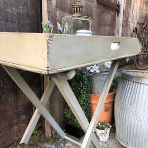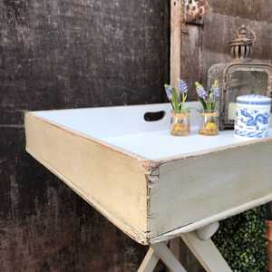 Gorgeous Grey Hand Painted Vintage Butler's Tray / Folding Side Table With White Interior