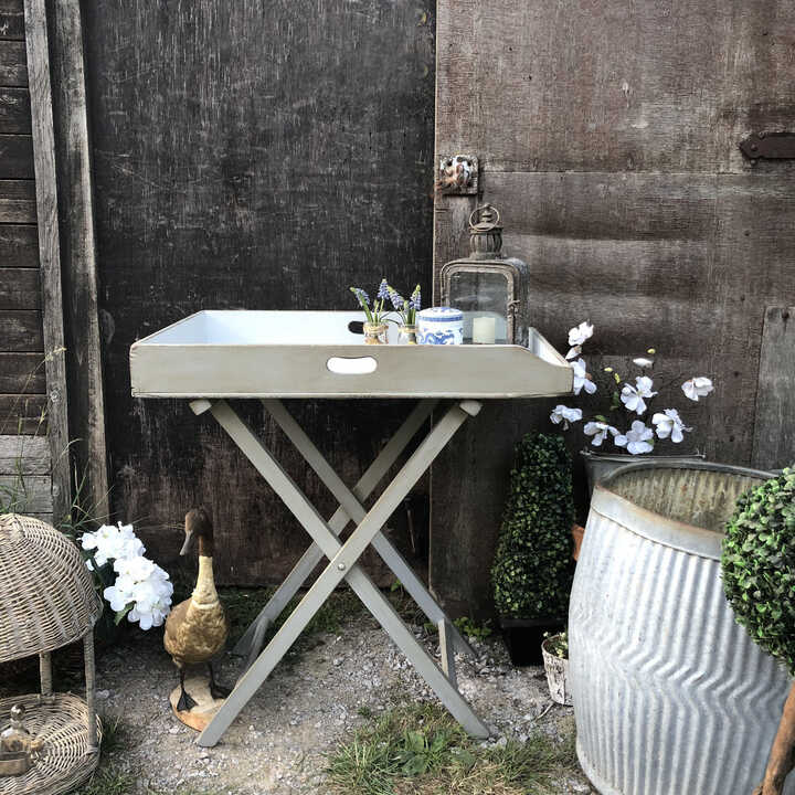 This folding side table is perfect as a side table in your hallway, dining room, living room, kitchen, bathroom etc. It is also perfect as an occasional table as it is easy to fold and store away. Add a bit of country charm to your garden when you have guests coming with this handy tray table. Although the paint is water proof it is not made to being left out in the garden.