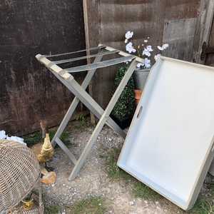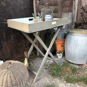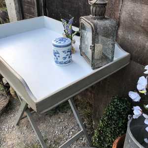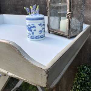 Country Chic Vintage Grey White Hand Painted Folding Butler's Tray Side / Bedside Table