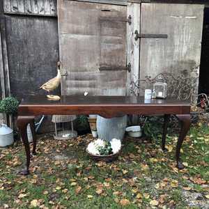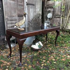 This gorgeous unique piece of furniture would look stunning as a conversation piece buffet table in your dining room, as an elegant hall table or use it as an interesting double desk.