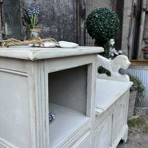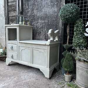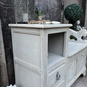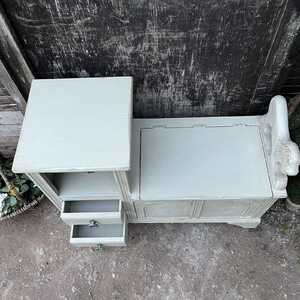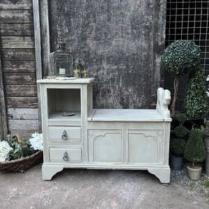A characterful hall seat / table that has been hand painted in Annie Sloan's Paris Grey and - using our artisan ageing technique - it has been slightly aged distressed, enhancing the gorgeous shape and charm of this piece.