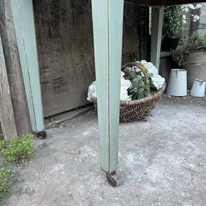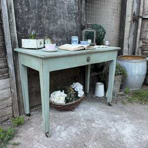 Characterful Rustic Duck Egg Blue Hand Painted Country Farmhouse Style Vintage Console Table / Kitchen Table / Desk on Caster Wheels
