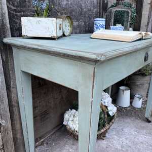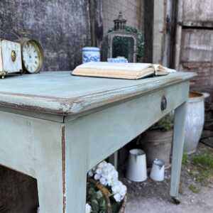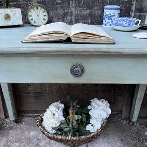 Vintage Country Farmhouse Duck Egg Blue Hand Painted Console Dining Table Desk