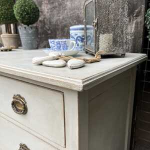 This gorgeous chest of drawers has been hand painted in Annie Sloan's Paris Grey. Using our artisan ageing technique, we have aged distressed it - enhancing the style and character of this piece.