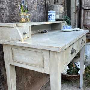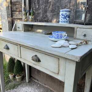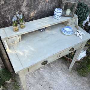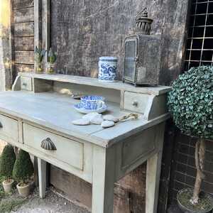 This characterful desk has been hand painted in Annie Sloan's Paris Grey - using our artisan ageing technique - it has been aged distressed, enhancing rustic Country charm.