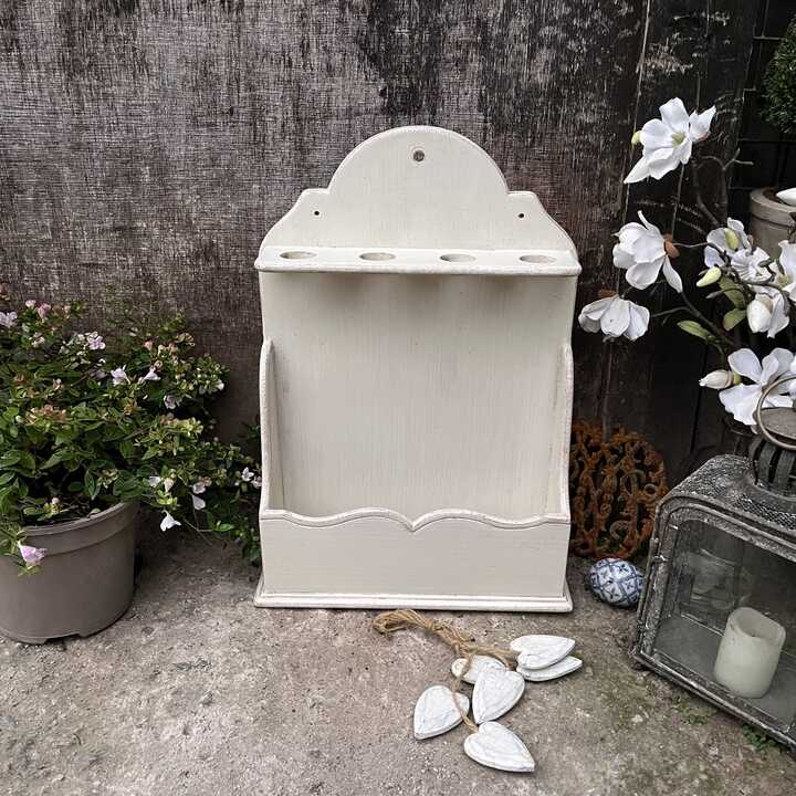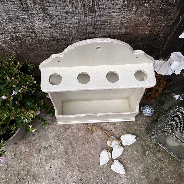 Rustic Country Style Old White Painted Wall Storage Cabinet Unit Spoon Holder