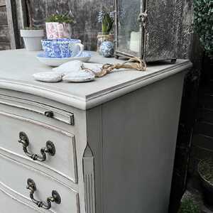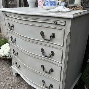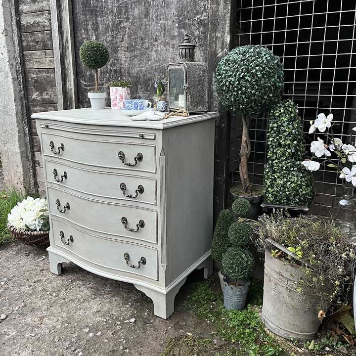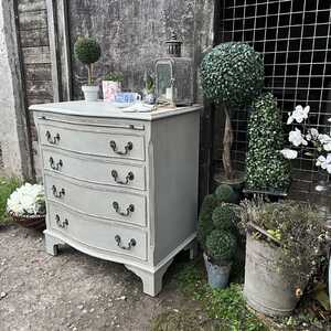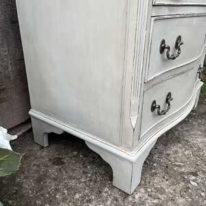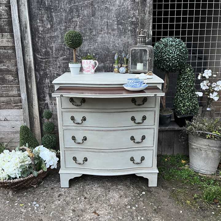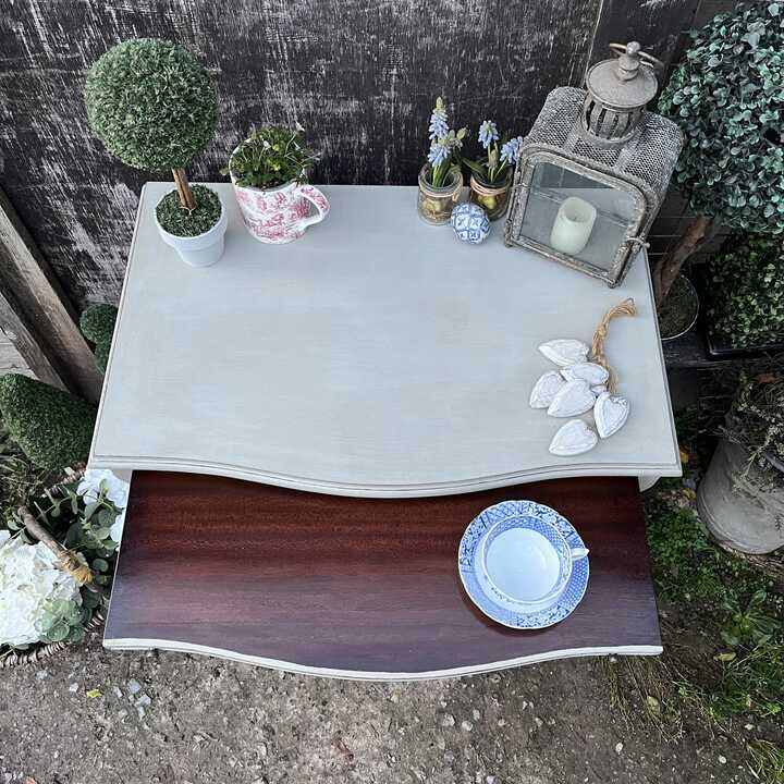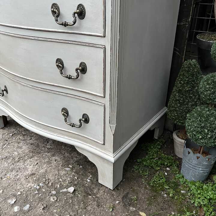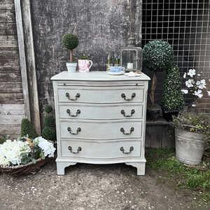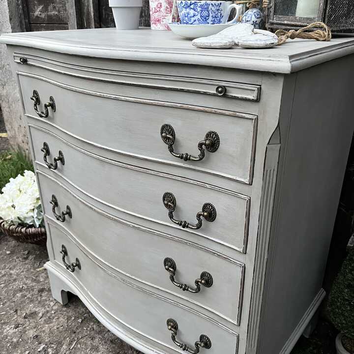 This vintage classic mahogany chest of drawers has been hand painted in Annie Sloan's Paris Grey. Using our artisan ageing technique, we have aged distressed it - enhancing the beautiful shape of this piece.