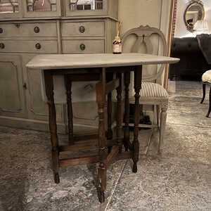 Smaller Vintage Country Style Gateleg Table With Grey Hand Painted Aged Table Top