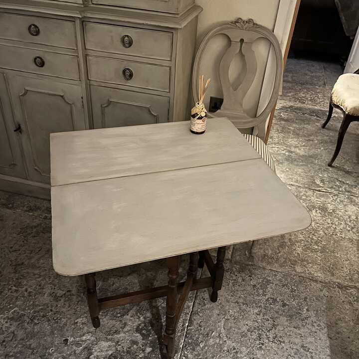 Beautiful Smaller Vintage Country Style Gateleg Table With Grey Hand Painted Table Top