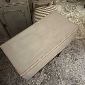 We left the base of this sweet little gateleg table untouched and focused on the table top, that we hand painted in Annie Sloan's Paris Grey and - using our artisan ageing technique - aged distressed, creating a gorgeous contrast to the brown base.