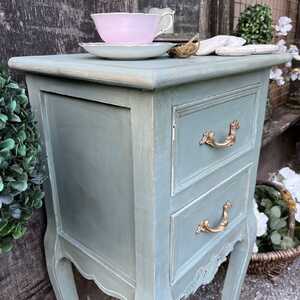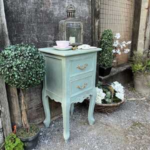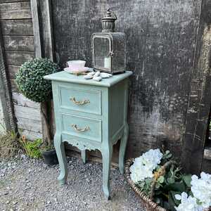 Charming French Country Brocante Style Duck Egg Blue Hand Painted Bedside Table