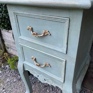 Duck Egg Blue Painted French Country Brocante Style Touch of Gold Bedside Table