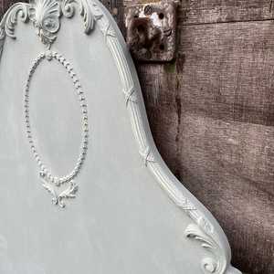 If you are looking for something romantic, yet elegant, then this piece is for you. It has the most adorable details. Just enough has been added to replicate the French Rococo style, yet keeping it elegant and "calm", making it fit in just as well in a contemporary home as in a period cottage. It is ready to attach to the bedframe. It was most likely made in the 1950/60s.
