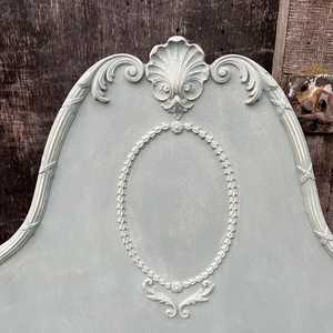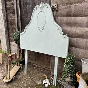 French Rococo Style Hand Painted Duck Egg Blue Ornate Vintage Single Bed Headboard
