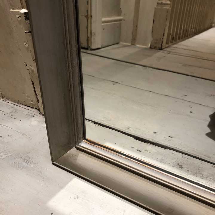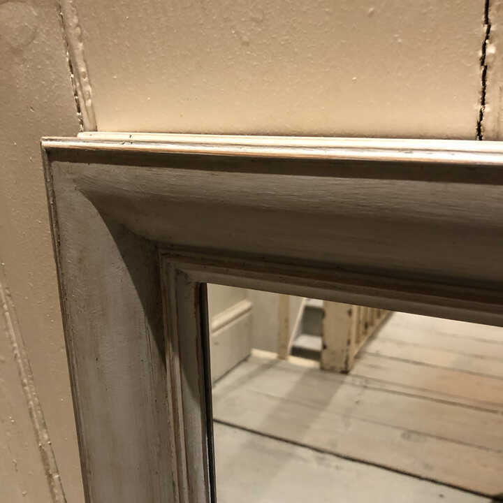 The pine frame of this classic style vintage wall mirror, has been hand painted in Annie Sloan's Paris Grey and sealed with a wax. Using our artisan ageing technique - we have aged distressed it, enhancing its elegant shape.