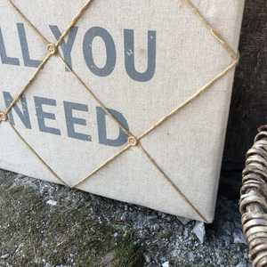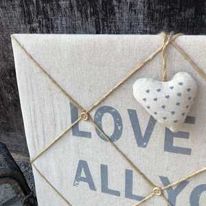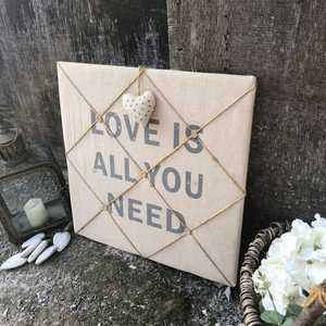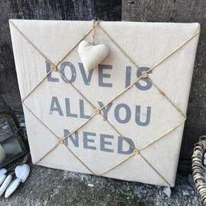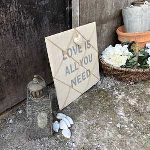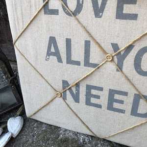Lovely Sand Coloured Jute Fabric Covered "LOVE IS ALL YOU NEED" Vintage Style Wall Notice Board
