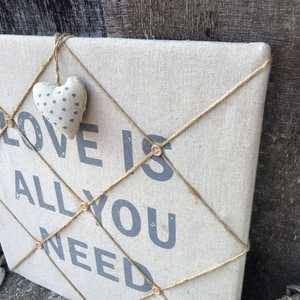 Sweet "Love is all you need" Sand Coloured Jute Fabric Covered Wall Notice Board